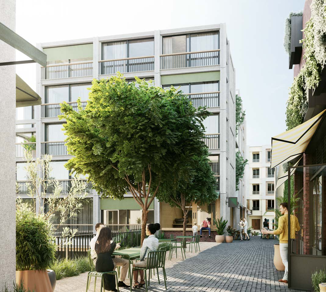 In the context of the Public Housing Renewal Program through the Victorian Government, MAB corporation were successful in their bid for a large site in Preston, now referred to as Preston Crossing. This project comprised a mix of replacement social housing (with a 10% increase on the original dwelling numbers) in addition to private apartments and townhouses. Acknowledging the potential ‘tender enhancement’ of bringing diverse housing into the fold, MAB sought to allocate a plot for Nightingale Housing to deliver 52 dwellings in addition to ground floor commercial facilities on a significant corner plot which marked a gateway to the precinct. While the balance of the project took a significant amount of time to secure presales in a challenging market, the Nightingale dwellings were successfully balloted within a single weekend.